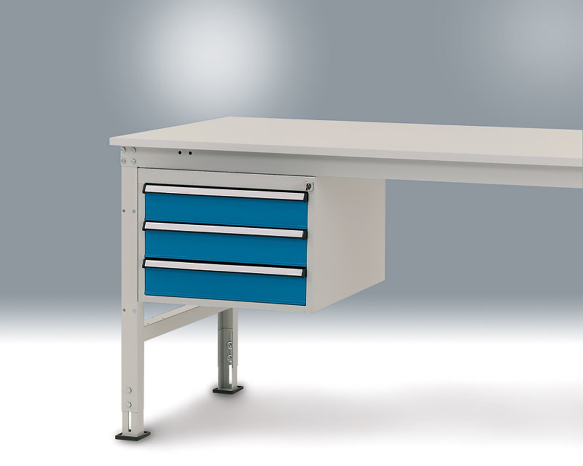 Kompletter Gehäuse-Unterbau für Packtisch PACKPOOL. Für die intelligente und saubere Ordnung am Arbeitsplatz mit einer Breite von 500 mm, einer Tiefe von 580 mm und einer Höhe von 360 mm. Das Gehäuse besteht aus einer massiv verstärkten Stahlblechkonstruktion. Schubfächer mit 50 mm Lochraster. Die Böden sind in einem 36 mm Raster gelocht, zur Aufnahme von Fachteilern. Belastbar ist das Gehäuse für alle UNIVERSAL Arbeitstische bis 200 kg (Ergo = 100 kg). Das Gehäuse ist an allen PACKPOOL Packtischen einsetzbar. Serienmäßig ausgestattet ist das Gehäuse mit Zylinderschloss und 2 Schlüsseln sowie mit Zentralverschluss. Hochwertige Pulverbeschichtung in 10 Farben, 1 Farbkombination lichtgrau/brillantblau, ohne Mehrpreis. Alle RAL-Farben auf Anfrage. Farbe 9006 alusilber ähnlich RAL9006! Das Gehäuse hat eine Nutzhöhe von 300 mm. Die Schubfächer sind bis 80 % ausziehbar und bis 35 kg belastbar. Die Schubfächer sind mit einer großen schwarzen Griffleiste und für das Beschriften der Schubfächer zusätzlich mit Etikett ausgestattet. Darüber hinaus ist das Gehäuse noch mit einer Einzelauszugssperre ausgestattet. Diese verhindert das unbeabsichtigte, gleichzeitige Öffnen von mehreren Schubfächern und verringert somit die Quetsch- und Verletzungsgefahr. Auslieferung erfolgt innerhalb 48-Std Service, in Handelsüblichen Mengen, (ohne Wochenende), z. B. Montag bestellen - Mittwoch Versand - 1-2 Tage Frachtzeit.
