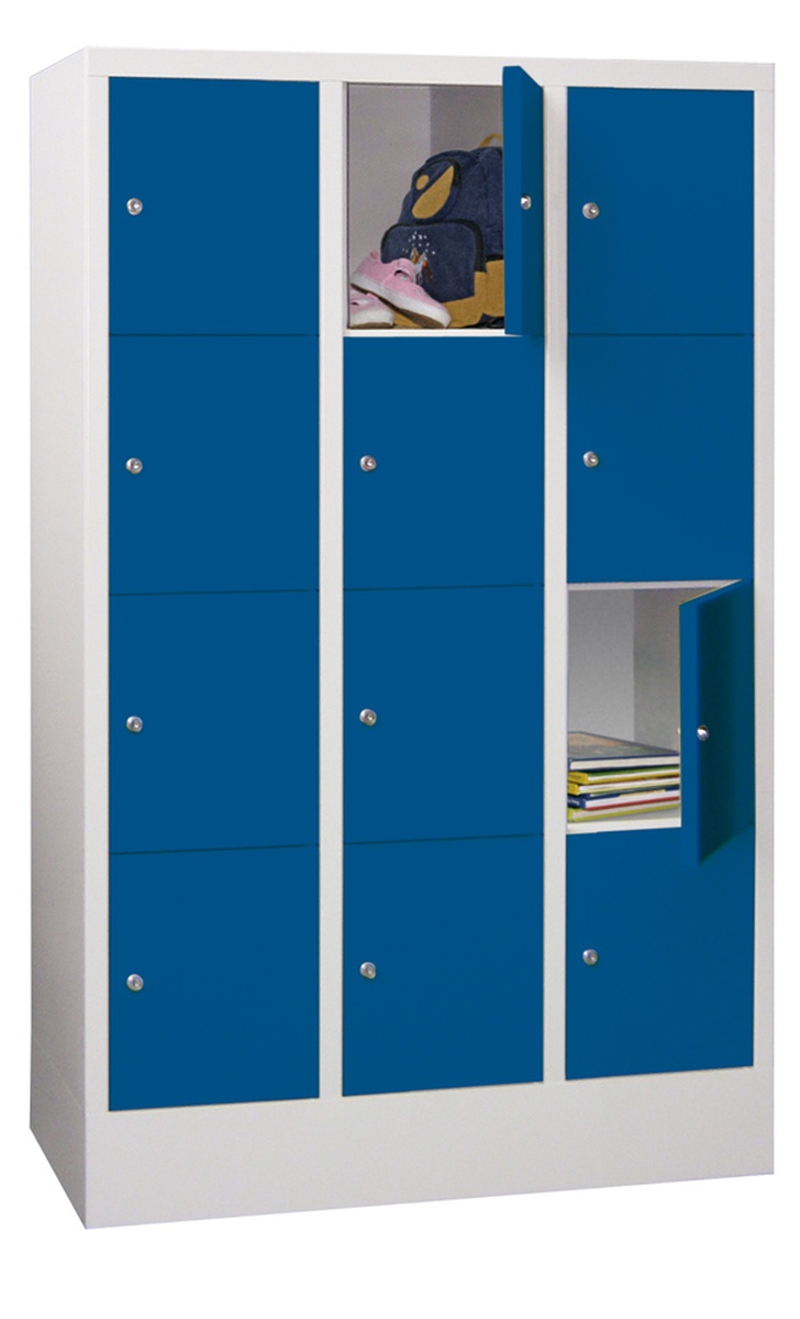 Schließfachschrank mit Sockel, 3 Fächer breit